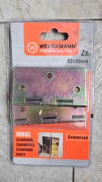 Set van 2 nieuwe werckmann scharnieren. Afmetingen: 82x82mm. Gegalvaniseerd. Geschikt voor diverse toepassingen. Materiaal: verzinkt staal aanbevolen gebruik: binnen en buiten het scharnier is gegalva