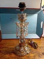 Prachtige vintage tafellamp van kristal, 40 cm hoog. Deze lamp zorgt voor een sfeervolle verlichting in elke ruimte. Het gedetailleerde ontwerp met kristallen hangers en gouden accenten maakt het een