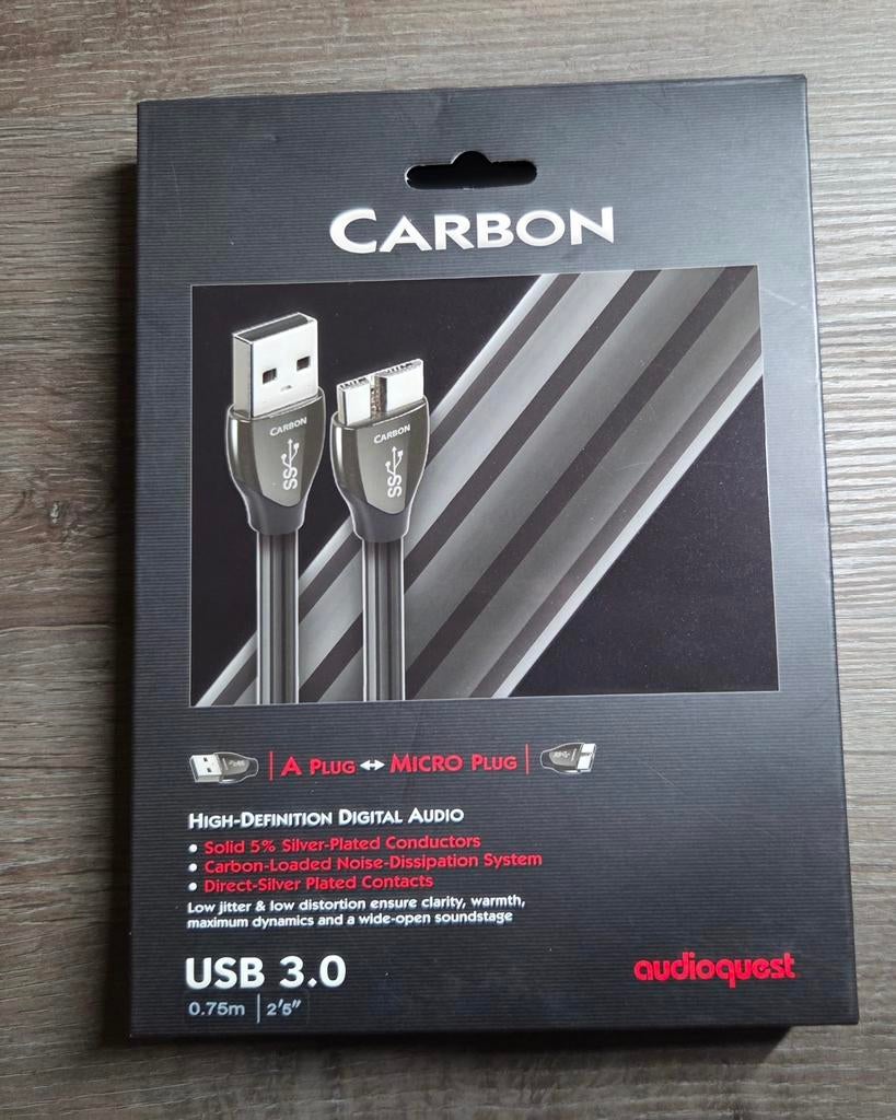 Te koop aangeboden: audioquest carbon usb 3.0 Kabel – 0,75 meter. Hoogwaardige usb-kabel voor optimale digitale signaaloverdracht tussen bijvoorbeeld computer, streamer en dac. Voorzien van verzilverdZo goed als nieuw Ophalen of Verzenden