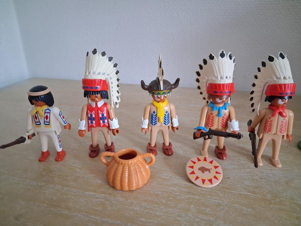 Playmobil indianen met wapens en tooien en korf vintage