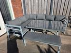 Te koop, een lounge/tuinset. Ruime hoekopstellingen van 2 bij 2.5 Meter. Inclusief bankje met kussen en tafel met glasplaat. Set is nog in prima conditie. Helaas is de antraciet kleur inmiddels meer o