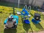 Zwembad avenli van 3 meter rond. Inclusief waterland zandfilterpomp, trap, afdekzeil, warmtezeil, stofzuiger, schepnet, onderplaten en de benodigde chemicaliën. Alles wat je nodig hebt om te beginnen.