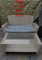 Tuinset van 18 maanden oud. Nooit gebruikt, staat (niet in de weg )op het terras. Kussens nog in verpakking, bank uit elkaar. Doe