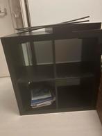 Vakkenkast, zwart. 4 Vakken, kan ook opgehangen worden, er zitten schroef plaatjes aan de achterkant. Is nog heel netjes, maar heb hem nu zelf niet meer nodig. Afmetingen: 79 x 39 x 79 cm