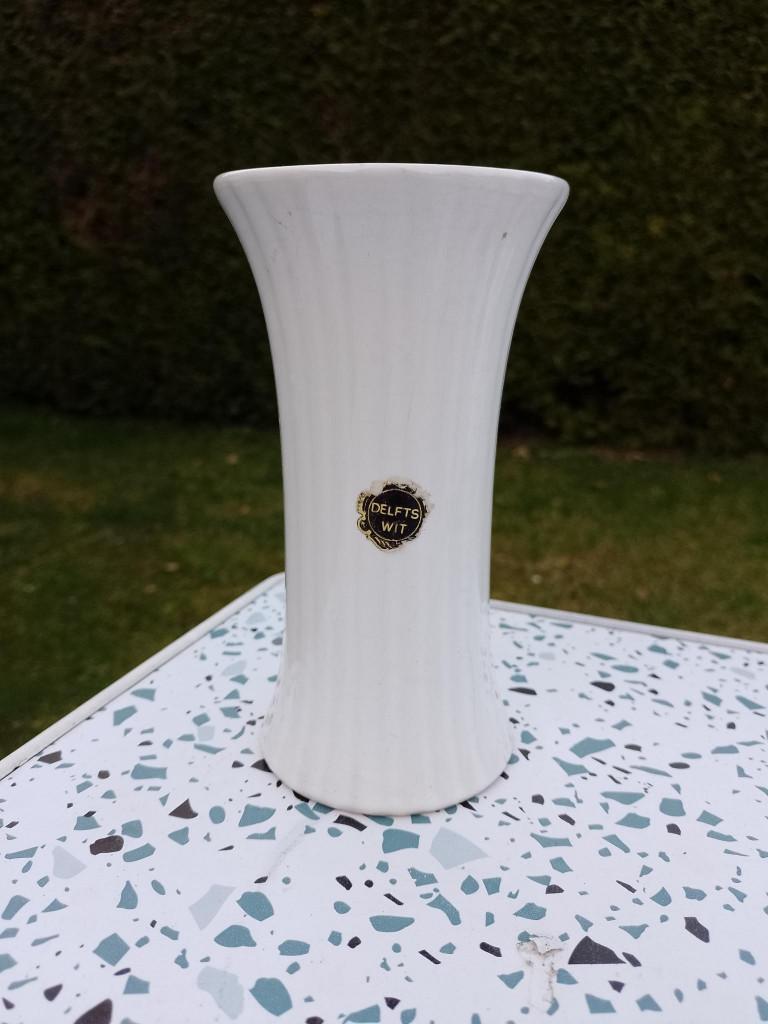 Mooi vaasje delft wit. Hoogte 15,5 cm, voet 7,5 cm, bovenzijde 8,5 cm.