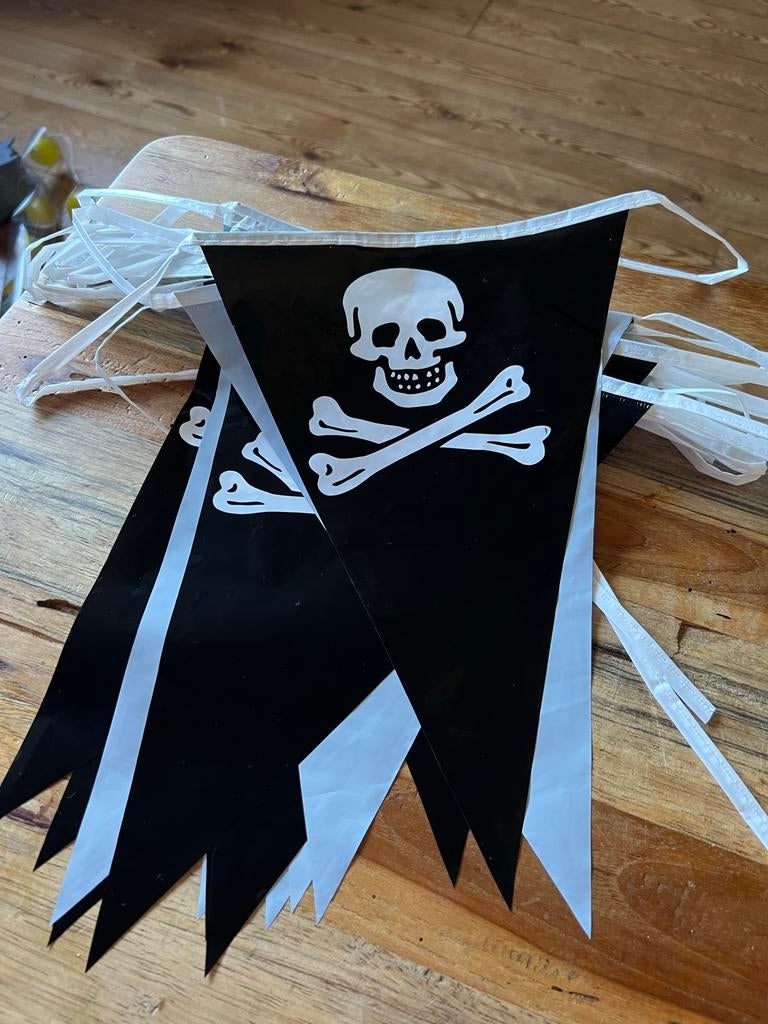 Complete set piraten thema verjaardagsversiering. Inclusief slingers, ballonnen en tafeldecoratie. Maak van je verjaardagsfeest een spannend piratenavontuur! Wat zit er in? 7 Gebaksbordjes 1 pak dichtNieuw Ophalen of Verzenden