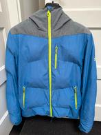 Prachtige, blauw-grijze, winter donsjas van quicksilver. Met gele ritsen. Maat m. Valt groot als maat l ik ben 1,85 en weeg 83 kg.