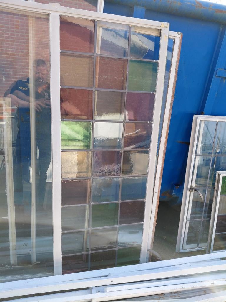 Stalen ramen met glas in lood.zijn niet allemaal heel.2 zijn