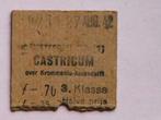 Treinkaartje van 27 augustus 1942, derde klasse, van amsterdam cs naar castricum via krommenie/assendelft. Amsterdam is moeilijk te lezen maar de aeg loketmachine gaf alle plaatsen een vast nummer, am