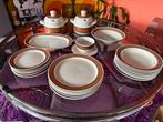 Vintage servies met een opvallend oranje accent. Het servies is in goede staat en bestaat uit verschillende borden, kommen, een pr