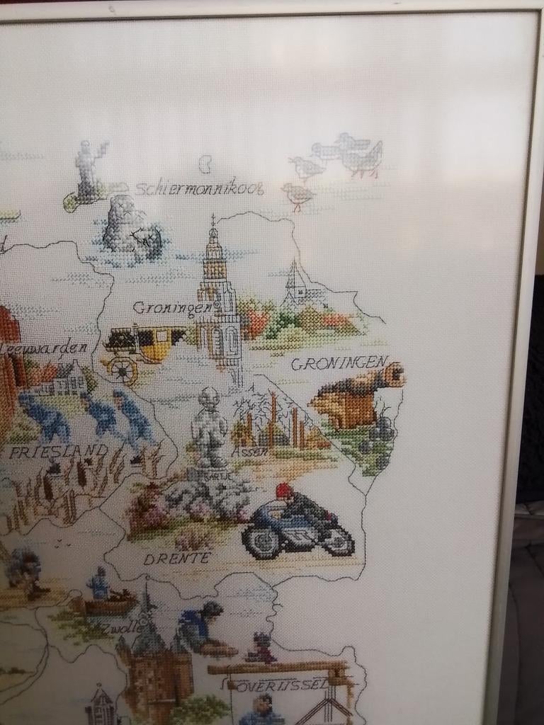 Mooi borduurwerk van nederland. Is in een aluminium lijst, is door speciaal bedrijf ingelijst. De conditie is netjes.