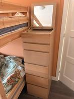 Mooie ikea malm ladekast met een handige spiegel. De kast heeft 6 laden en is in goede staat. Ideaal voor het opbergen van kleding en accessoires. De spiegel is perfect voor het opmaken of stylen van