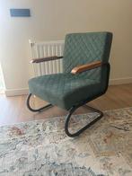 Deze stijlvolle fauteuil is een perfecte aanvulling op elk interieur. De stoel heeft een comfortabele zitting met een groen gestoffeerde bekleding en een elegant ruitpatroon. De armleuningen zijn afge