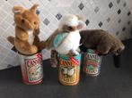 3 aussie knuffels in een blik, (blik onderkant open) kangaroo, kookaburra, platypus verzendkosten koper