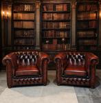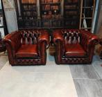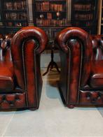 Wordt dit pareltje van jou? Een prachtige en karaktervolle chesterfield fauteuil met bijpassende voetenbank. Uitgevoerd in gevlamd rood leer met een warme, klassieke uitstraling. Details: set: fauteuiZo goed als nieuw Ophalen of Verzenden