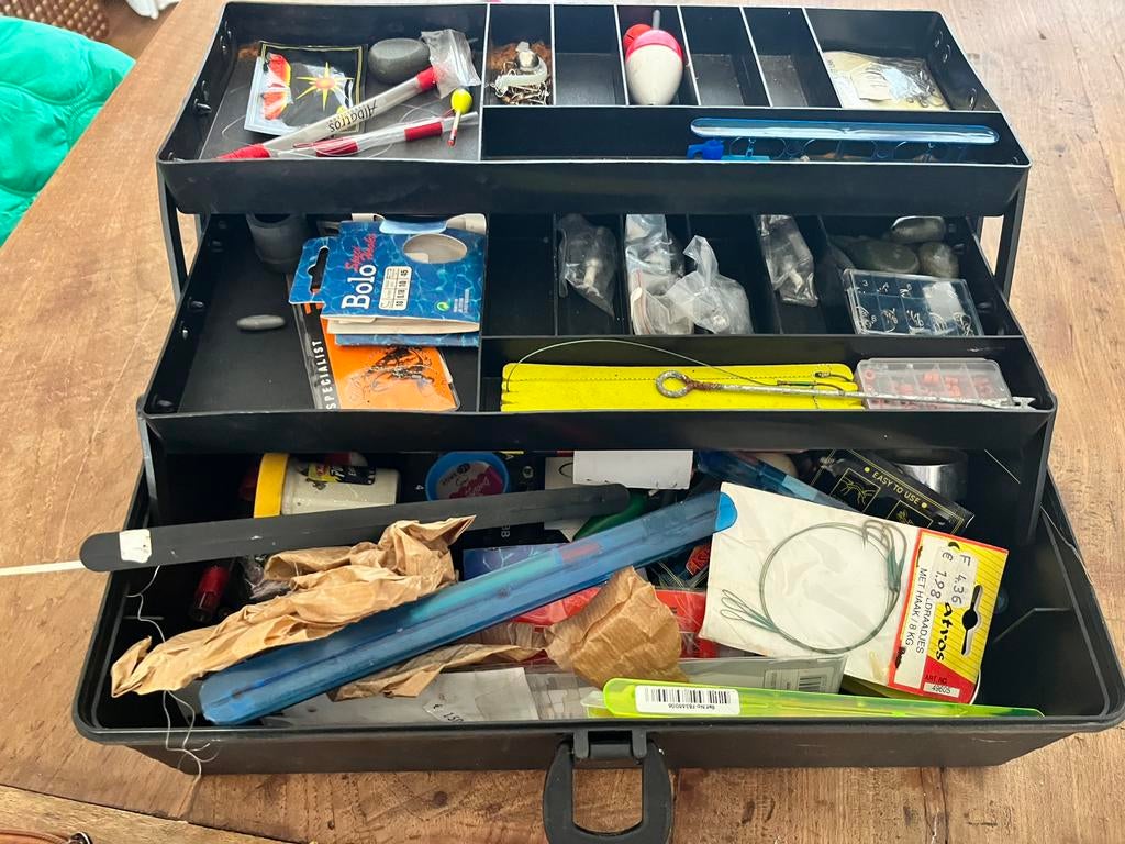 Diverse vis hengelaccesoires in koffer