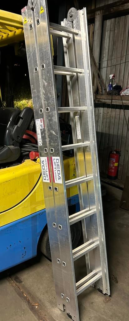 Dubbel ladderdeel tbv een geda acculift. Opengeklapte lengte 4,50 meter nieuwprijs €580 ex btw. Betreft enkel het ladderdeel vaste verkoopprijs €250 ex btw. Zoektermen: ladderlift pannenliftZo goed als nieuw Ophalen