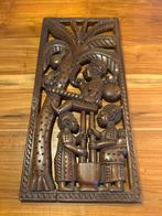 Mooie afrikaanse houten wanddecoratie met afbeelding aan beide kanten. Let op: ooit gelijmd en aan één kant mist een klein stukje.