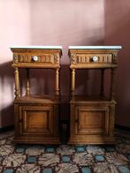 Een set mooie antieke franse nachtkastjes. De kastjes zijn identiek en in zeer goede staat met minimale gebruikssporen. Vervaardigd uit eiken en voorzien van mooie details zoals het snijwerk. Beiden d