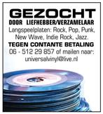 Liefhebber/verzamelaar zoekt langspeelplaten in de genres pop, rock, soul, punk, new wave en jazz. Geen nederlandse of klassieke muziek. Contante betaling mogelijk.