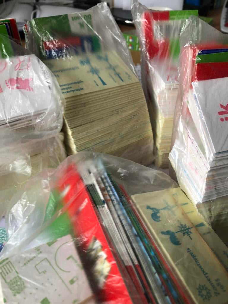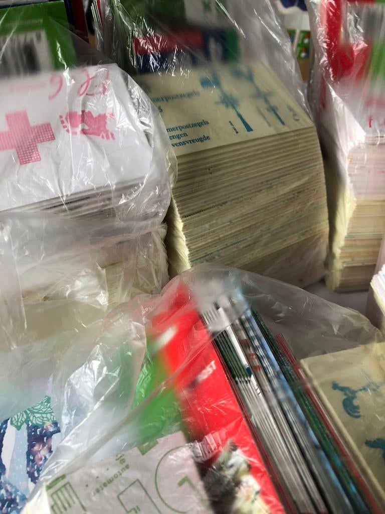 Voor de liefhebbers!!!!!Uitverkoop prijs!!!!! 800 Grote kaarten uit de jaarsets uitverkoop prijs 22,50 tevens ook nog 1200 kleine kaartjes uit de pzm met hoesjes uitverkoop prijs 22,50 zie foto’s kijk
