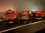 Mooi vintage 4-delig theeservies in bruin gemarmerd glazuur. Het servies is in goede staat en niet beschadigd. De set bestaat uit een theepot met deksel, een melkkannetje, een suikerpot met deksel en