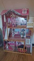 Leuk groot barbiehuis voor uren speelplezier! Er zitten ook wat meubeltjes bij en er zit een lift in. Afmetingen h120 x b81 het huis is gebruikt en heeft wat beschadigingen maar dat maakt het speelple