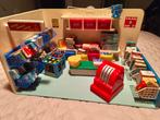 Charmant retro speelgoedwinkeltje uit de jaren 70. Compleet met diverse accessoires zoals koffieblikken, boodschappen, weegschaal en een kassa. Een nostalgische aanwinst voor verzamelaars en liefhebbe