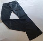Mat leather look jeans met wijduitlopende lange pijpen. Stretch. Elastiek achter in de taille band. Materiaal katoen, polyester, e