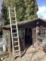 Een tweedelige ladder te koop. De ladder is van aluminium en heeft 2x10 sporten. De ladder is gebruikt en heeft wat lichte gebruikssporen, maar is nog prima te gebruiken voor klusjes rondom het huis.