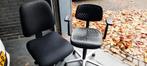 Twee nette buro stoelen. Zitten nog prima. Eentje is van makkelijk afwasbaar materiaal. Werken nog prima.