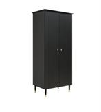 2-deurskast van de serie cloë. De combinatie van gouden accenten en mat zwart geeft cloë een warme luxe uitstraling. Het interieur bestaat uit een brede hangroede, een vaste legplank en een legplank d