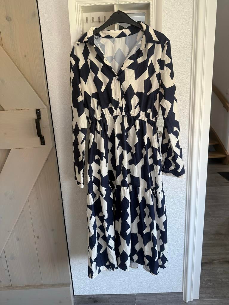 Mooie aaiko jurk in maat l met een trendy dierenprint in blauwtinten. De jurk heeft een kraag en knoopsluiting, perfect voor een casual of geklede look. De stof is licht en comfortabel, ideaal voor waZo goed als nieuw Ophalen of Verzenden
