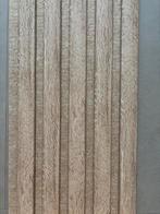 Restpaneel voor lattenwand. Kleur: licht eiken materiaal: mdf kleur vilt: licht bruin