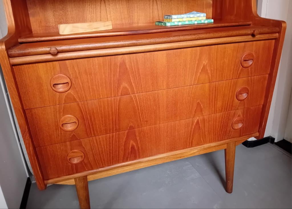 Mooie vintage wandkapstok met een warme houten basis en vijf dubbele metalen haken. Bovenop bevindt zich een handige hoedenplank, ideaal voor het opbergen van hoeden, sjaals of andere accessoires. DezZo goed als nieuw Ophalen