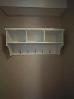Mooie witte wandkapstok met een handige plank erboven. Ideaal voor jassen, tassen en andere spullen. De kapstok is in goede staat en heeft meerdere haken. Teab