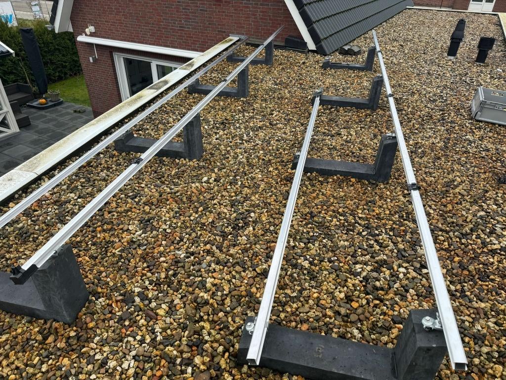 6 x trina vertex 440 wp full black glas glas [ kan ook 2 x oost west lengte per rij 5,4 m bij 1,134 m volledige onderconstructie met onze zonnepaneel- betonsteunen met het beroemde jeka-click-system,