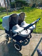 Bugaboo tweeling wagen met babywiegjes en stoeltjes waar de kleintjes in kunnen zitten als ze wat ouder zijn. In gebruikte staat maar wel goed onderhouden en schoon. Er is niks stuk en wagen werkt naa