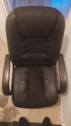 Comfortabele zwarte bureaustoel met stof en skai lederen delen. De stoel is in hoogte verstelbaar en heeft een kantelmechanisme. V