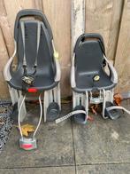 Complete set qibbel fietsstoeltjes, bestaande uit een voorzitje en een achterzitje. Beide stoeltjes zijn inclusief de benodigde be