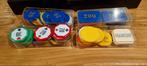 Mooie oude franse bridge set in leren opbergdoos met fiches le tanneur staat op omdoos. Kaartjes zijn compleet. Lipje om doos te o