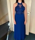 Een mooie koningsblauwe galajurk. 1 Avond aangehad. Het witte op foto 2 is de licht inval van de raam. Jurk is naar de stomerij geweest. Maat 38.