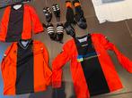 3 voetbal shirts maat l zwart oranje venlosche boys en 2 paar lange voetbal sokken maat 42/44. Alles in zeer goede staat. Ook 2 pa