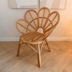 Leuke rotan stoel in de vorm van een bloem. De stoel is in goede staat en is voornamelijk als decoratie gebruikt, waardoor hij bij