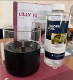 Nieuwe tender candle lilly 10 in het zwart, compleet met een fles tenderfuel van 0,5 liter. Deze stijlvolle kaars zorgt voor een gezellige sfeer en is een duurzaam alternatief voor traditionele kaarse