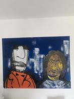 Origineel schilderij te koop. Herman brood & espen gregor hagen duo schilderij, 90 x 120 cm. Gemengde techniek op doek, man + indiaan op blauw. In het echt veel mooier dan de foto's. Cve is va