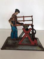 Antiek stoommodel voor gebruik met stoommachine man met slijpsteen, het voorwerp om te slijpen ontbreekt. Mannetje is 1-dimensionaal. In goede staat.