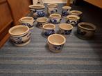 Een verzameling van authentieke keulse potten, variërend in grootte en decoratie. Deze potten zijn handgemaakt en voorzien van tra