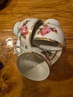 Prachtige set van twee bavaria porseleinen kopjes en schotels, versierd met een elegant rozenmotief en gouden randen. Ideaal voor de liefhebber van vintage servies of als decoratief item. De set is in