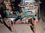 Deze houtdraaibank staat op een houten onderstel. Zondags gesloten